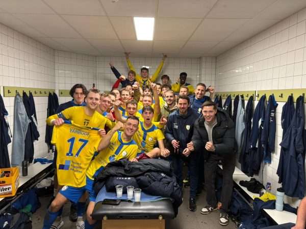 Eerste nederlaag van het seizoen voor de voormalige leider dus, terwijl het nagelbijtend wachten was op het resultaat in Wilrijk. Toen het nieuws binnen sijpelde dat Turkse Rangers er 2-3 ging winnen, was het hek van de dam. ‘De Kempen is van ons’ zingen ze bij geel-blauw wel vaker, vanaf zaterdagavond is er weer een strofe aan toegevoegd. ‘De eerste periodetitel is nu ook van ons’!